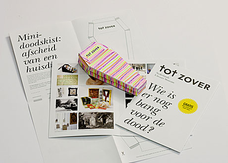 De nieuwe folder van Nederlands Uitvaart Museum Tot Zover biedt niet alleen informatie over de collectie, maar bevat ook een doe-het-zelf vouwmodel om een doodskistje voor een huisdier te maken. Dit papieren kistje kan voorzien worden van een naam en versierd worden naar wens.
